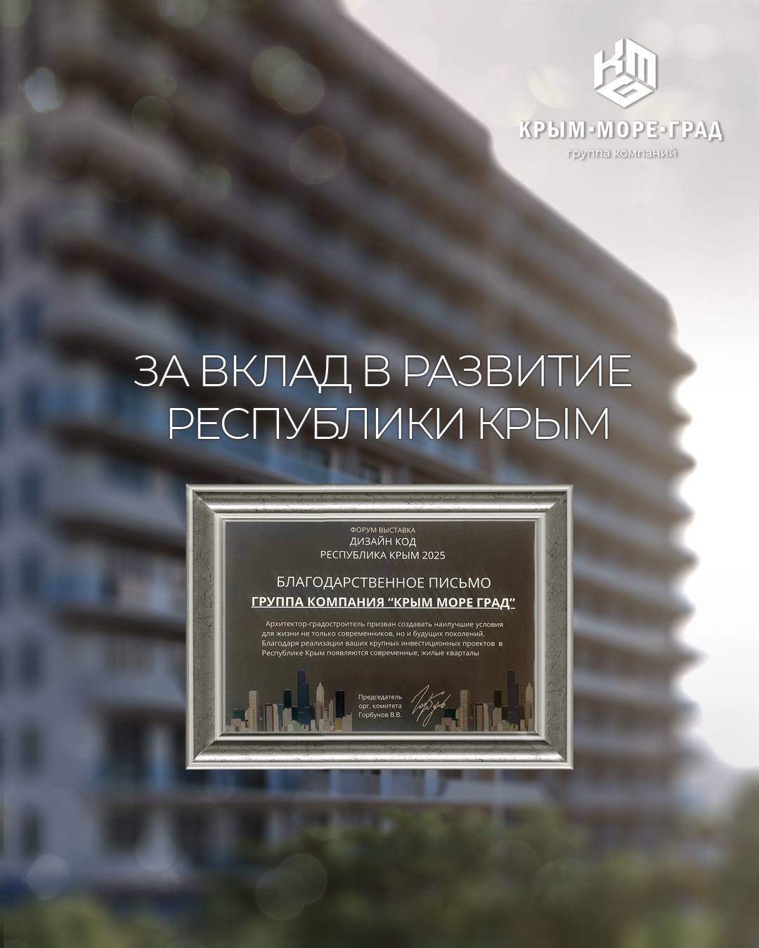 🏆 Мы получили благодарственное письмо «За вклад в развитие Республики Крым» на форуме «Дизайн Код Республика Крым 2025»!